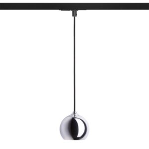 Viseća svjetiljka sa sjenilom od kroma ili mat nikla. Crni tekstilni kabel s adapterom za jednokružne staze.